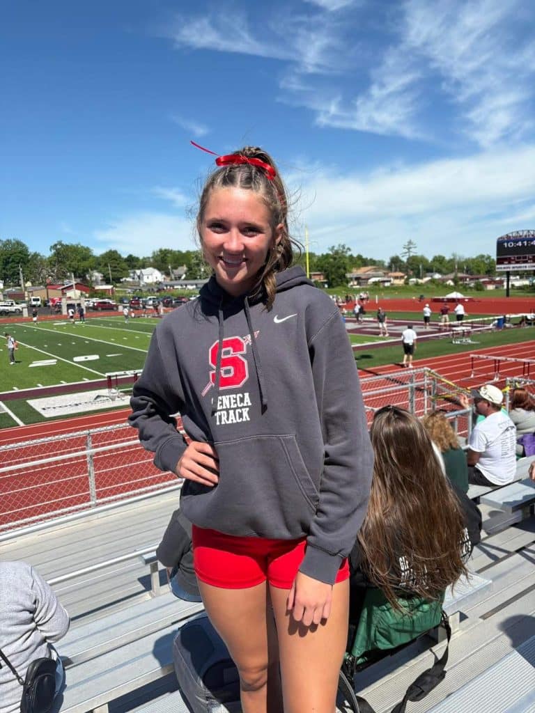 Hadley Hilburn brings energy, determination, and heart to everything she does at Seneca High School. As a sophomore competing in both track and cheerleading, she has already established herself as a dedicated athlete who thrives on teamwork and constant improvement. Whether she’s sprinting in the 4×200 and 4×400 relays or competing in the high jump and long jump, Hilburn embraces every opportunity to grow.